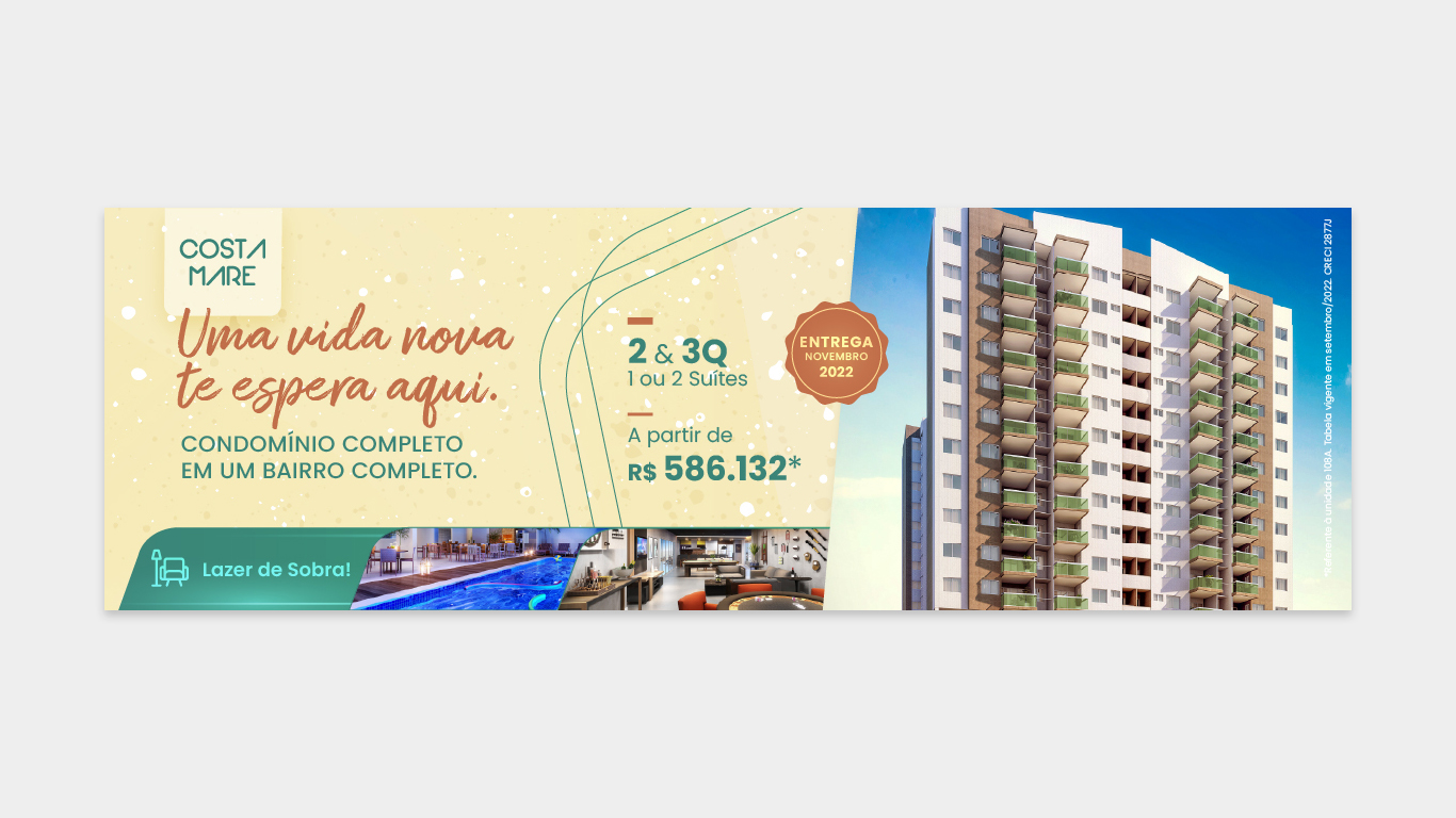 O trabalho envolveu a criação de identidades visuais completas para empreendimentos, além do desenvolvimento de peças voltadas para campanhas digitais, incluindo Facebook Ads, Google Ads e conteúdos para redes sociais. Também foram projetados layouts de landing pages otimizadas para conversão, alinhando design, experiência do usuário e objetivos comerciais.