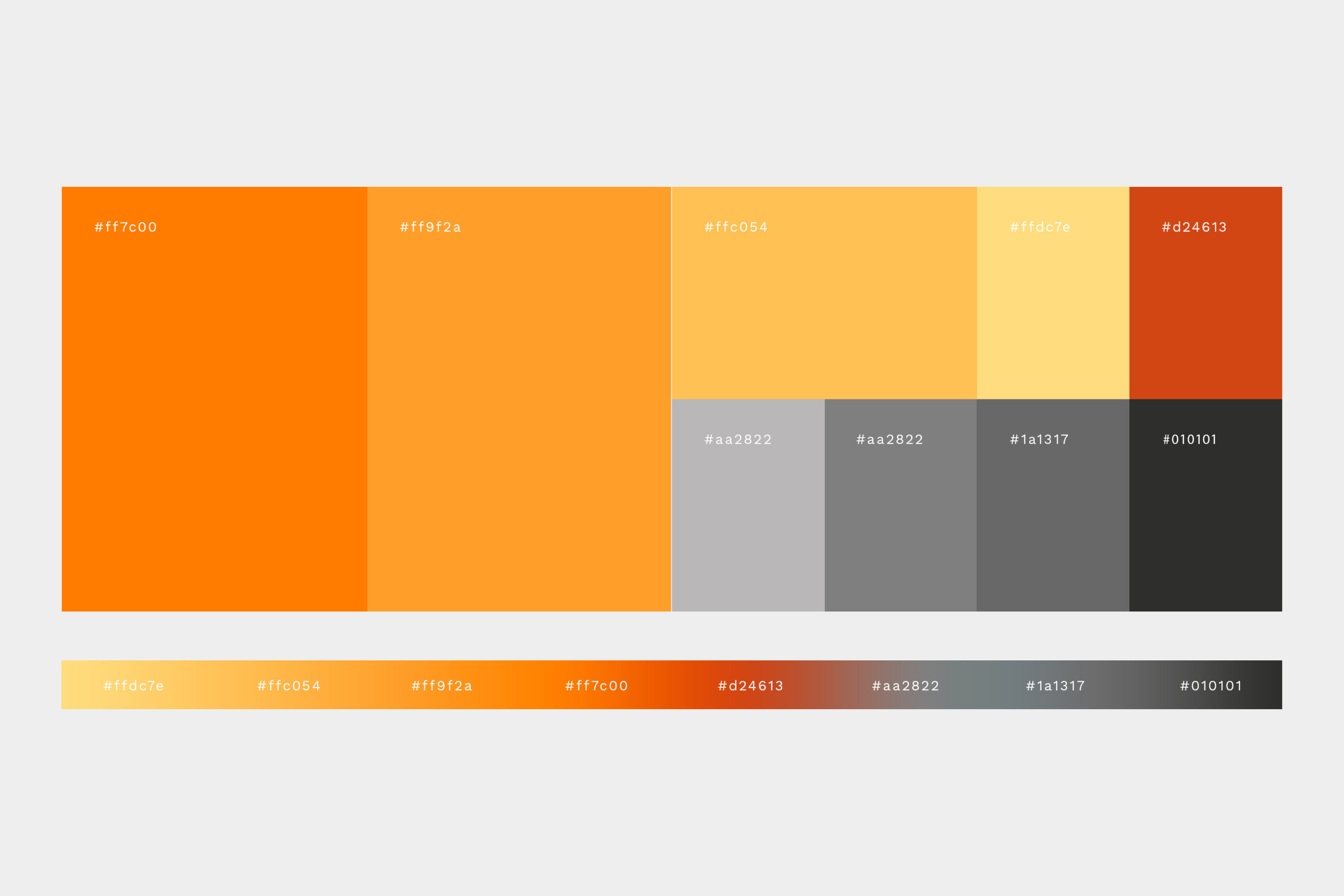 A paleta cromática explora tons vibrantes de laranja, associados à energia, velocidade e entusiasmo, contrastando com tons neutros e industriais que remetem à mecânica e à durabilidade dos equipamentos. Essa combinação cria uma identidade marcante, contemporânea e facilmente reconhecível.
