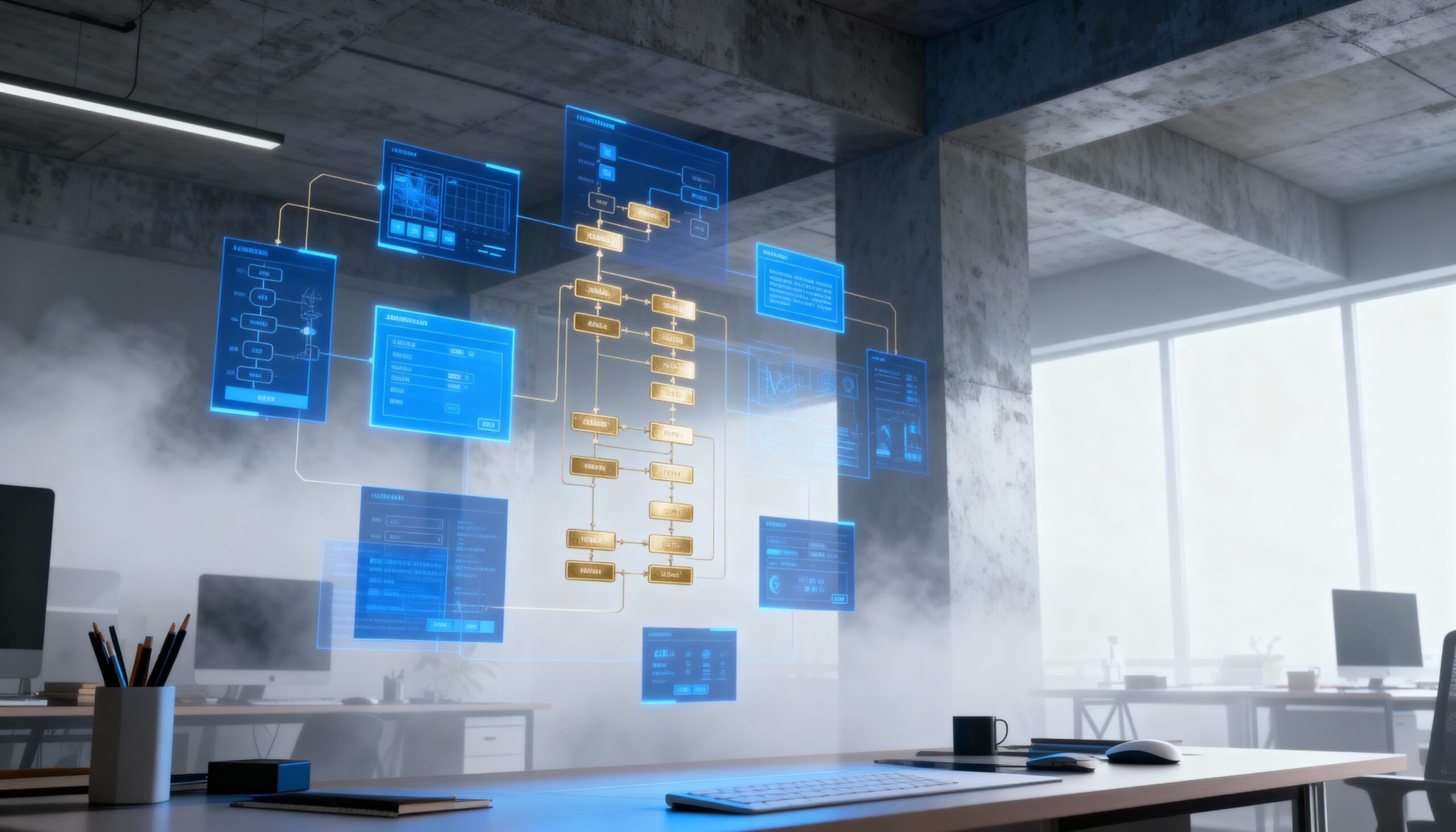 Criamos a fundação: arquitetura, mapas mentais e fluxos.